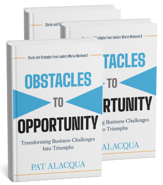 Pat Alacqua’s breakthrough book highlights stories, strategies, and insights from leaders who’ve mastered business challenges. With real-life stories and actionable tools, Obstacles to Opportunity empowers you to unlock the potential hidden in every challenge.